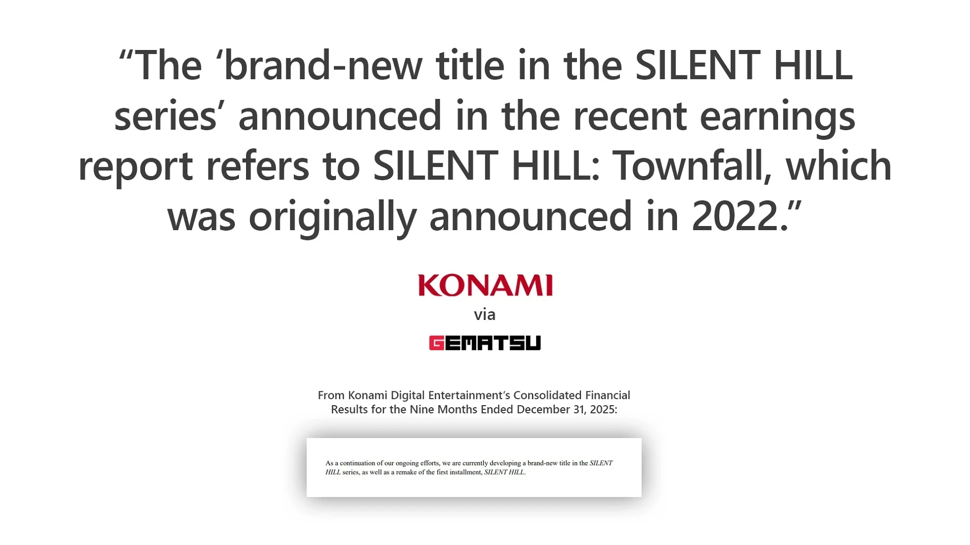 «Новая Silent Hill» из свежего отчёта Konami оказалась SH: Townfall авторов Stories Untold