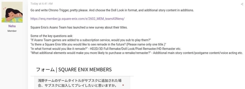 На ум, конечно же, сразу же приходит культовая Chrono Trigger. И, судя по комментариям в треде, именно на её переосмысление больше всего и надеется аудитория. Как скоро будет опубликован результат опроса — не уточняется.