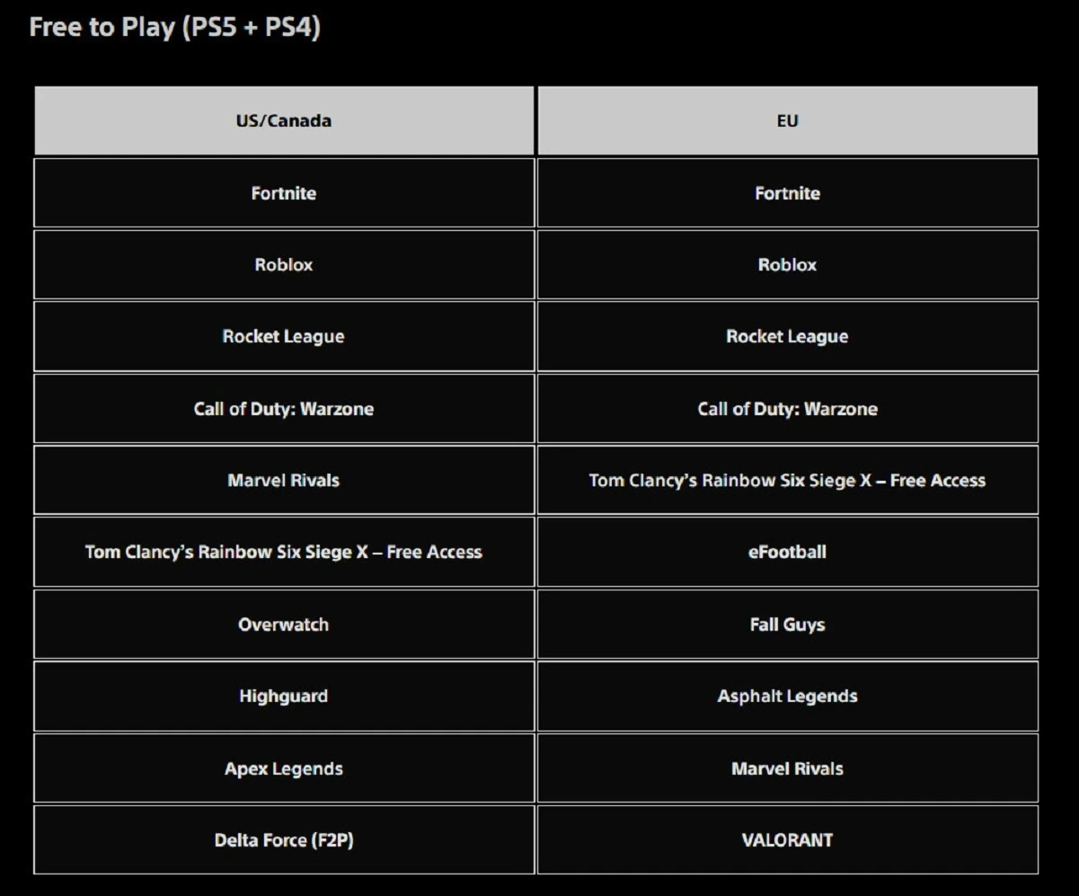 Топ загружаемых условно-бесплатных игр для PS4 и PS5 в США с Канадой и Европе за февраль 2026 года