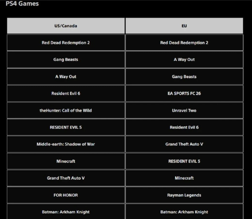 2 фотоДля PlayStation 4 уже не выходит громких хитов, поэтому топ-20 по загрузкам состоит из современной классики. Например, лидером в США с Канадой и Европе стал вестерн Red Dead Redemption 2. Также в обоих сегментах игроки активно загружали пятую и шестую части Resident Evil.