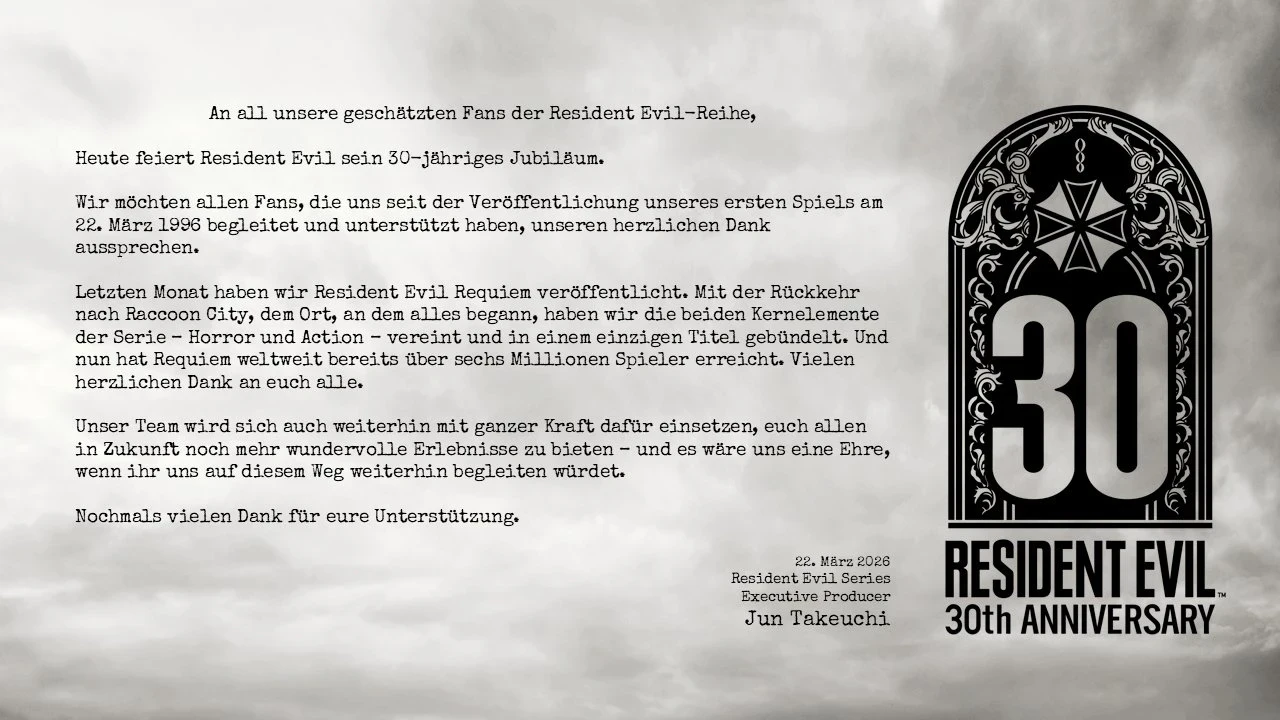 Такеучи отметил, что сообщество формировалось с момента выхода первой игры 22 марта 1996 года, а сейчас геймеры окунулись в атмосферу Resident Evil Requiem. Исполнительный продюсер отметил, что разработчики объединили хоррор с боевиком, чтобы вернуть фанатов в знакомые места.