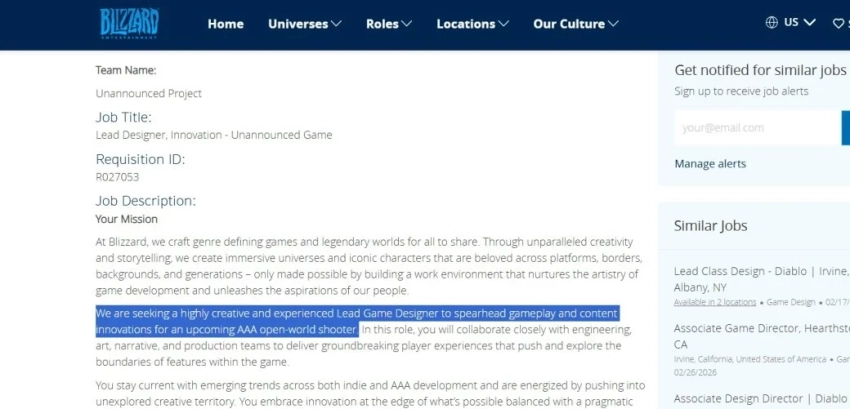 Согласно ей, компания (всё ещё!) работает над неанонсированным AAA-шутером в открытом мире, в котором делается упор на инновации. Кроме того, для него ищут специалиста с «подтверждённым опытом работы с Unreal Engine». И для игр Blizzard разработка на движке Epic Games — это действительно необычно.